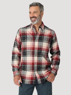 Wrangler Rugged Wear Long Sleeve Flannel Plaid Button Down Shirt